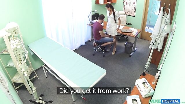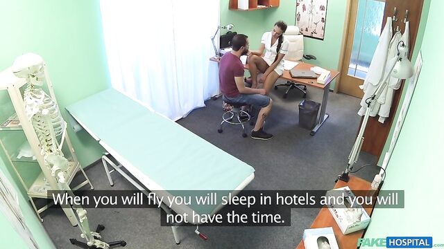 Description:I was sitting in for the doctor when in walks this guy, I wasn't expecting anyone. He had a hot tattoo and an even hotter beard. I love a man with a beard, gives me something to cling on to! So, he tells me he needs to see the doctor about getting a certificate to say his eye sight is fine to fly a plane. I told him obviously being a professional I can't just give him a certificate if he isn't fit to fly! We came to a mutual agreement though, I got up from my desk and walked over to him seductively, looking in to his eyes. I spread my legs on got on top of him, looking directly in to his eyes the whole time. Then I got him to remove my tight outfit, pull off my bra and suck on my tits! He got up, took me over to the bed, took off his shorts and let me suck his hard cock! He takes control of the situation, he pulls me up, I take off my skimpy panties and get on the bed, he fucked me so hard, his eyes fixated between looking at his dick going in and out of my pussy and watching my tits bounce around! I wanted to taste his dick again so I got him to lie down on the bed and lick my pussy whilst I give him a blowjob to remember! We fucked in a ton of different position before he came all over my tits! All in a days work!