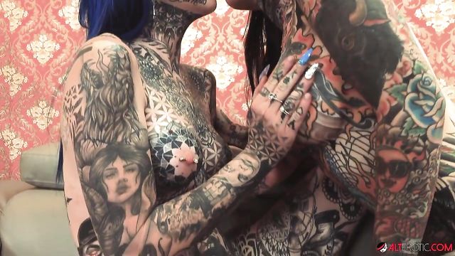 Description:Tattooed sluts Amber Luke and Tiger Lilly are horny and busy making out on the couch when our team caught them. We don't want to disturb these lustful babes from expressing themselves, so we just let them do what they want while we capture it all on film.