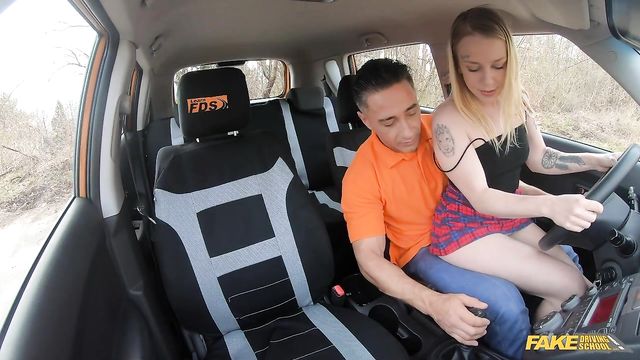 Description:Blonde babe Crystal Sinn had her first driving lesson with me today. The weather was good, and she was wearing a sexy, low-cut skirt which made it difficult to concentrate! She said she wanted to learn how to drive a manual and it was obvious she couldn’t wait to get stuck into it. I really liked her enthusiasm, and I invited her to sit on me so that she could get some hands-on experience behind the wheel. However, rather than getting to grips with the gear stick, she felt my hard cock instead! I had a feeling that Crystal was a bad girl when she let me undress her and I saw that she had pierced nipples. The tattooed slut enjoyed deepthroating my dick, and then she proved she was a natural in the driving seat by riding me expertly cowgirl-style! After fucking Crystal’s tight pussy doggystyle outside the car, I banged her in the missionary position before spunking my load all over her natural, perky tits!