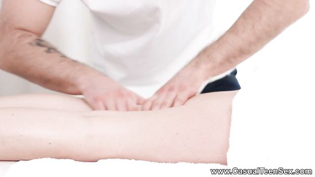Description:This gorgeous slender teeny always chooses to get her massage fully naked and now you know why. She knows her handsome masseur just won't be able to resist the temptation to give her extra special massage twitching her horny nipples, fingering her well-oiled pussy and eventually fucking her good right on a folding massage table. Deep, intense and sensual internal massage with powerful orgasm is just what this teeny needs to make her day. Bravo!