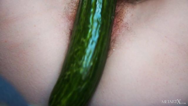 Description:Petite beauty Sofi Shane pulls up her lace dress to reveal her curvy ass and unshaven pussy, squeezing and fondling her beautiful big breasts as she runs her fingers through her fluffy bush. She spreads her thighs open and teases her creamy pink pussy, thrusting her fingers into her own wetness, but she wants more. Grabbing an enormous cucumber, the cute brunette sucks the end to lube it up, then pushes it into her pussy. It’s a tight stretch, but she gradually eases it deeper, moaning as she fucks herself hard. She rubs her clit, gasping for breath, boobs jiggling as she cums noisily. She spreads the copious wetness all around her pussy before squatting on the vegetable, impaling herself and sliding up and down, driving herself wild. Be sure to watch right through to the naughty ending…