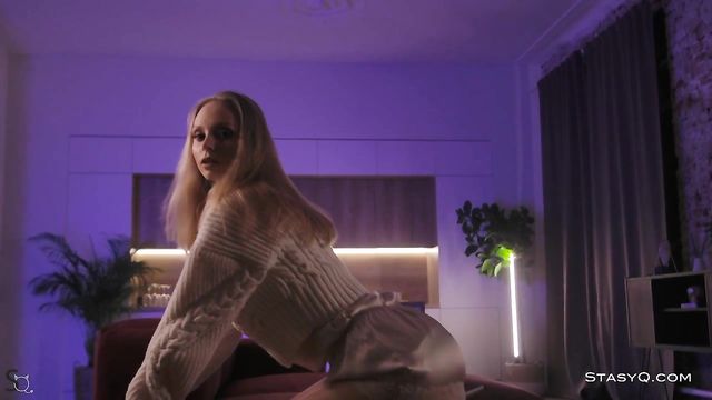 Description:Cuddly and erotic, ArielQ exposes her charms. This heavenly blonde goes into a full seduction mode in release 491. She begins her sultry show by caressing her milky skin, paying close attention to her juicy thighs, firm booty, and perky breasts. Said Energizer stands before this StasyQ model and grasps her beauty with his camera. Instead of stopping, ArielQ turns her kitchen into a podium and flashes her soft, beige lingerie. As the subtle light falls on her slender waist and fair complexion, ArielQ dances around and takes the show to another level. Overwhelmed by desire, this blonde goddess takes her bra off, lays her body on the kitchen table, and strokes her breasts, sensitive nipples, and her tummy. Before you know it, she takes her panties off, lays on a burgundy sofa, and turns her naked tushy toward the camera. To spice things up, ArielQ keeps her high heels on throughout the show.