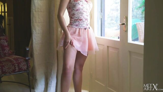 Description:Adorable Lucretia K may find it hard to paint when she's bored, but it's impossible to concentrate on her work when she's wearing such a short skirt and she's bending down to apply brushstrokes to the canvas. Her peachy ass is mesmerizing. Her panties split her cheeks, snaking down between them to cup her pussy snugly. Such a sight makes you wish she'd never stop painting, but then the time comes and she drops her brush and makes her way inside. In front of the windows, she pulls off her top, her sweet titties bouncing as they come free. At last, she pulls down her skirt and runs her fingers over her pussy, feeling her sex through her panties. Leaning against the wall, thrusting her ass out, she pulls her underwear down around her thighs and her fingers delve between her pussy lips, grinding over her clit, her eyes lingering over her shoulder. She sits with her legs spread wide apart, and sinks two fingers inside her tight, shaved pussy, masturbating with wild desire.