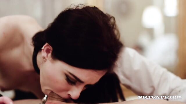 Description:In the sexiest lingerie you have ever seen, Private’s Amber Nevada shows off her fine body in the mirror… This slut looks great in stockings and high heels! This nympho warms herself up, masturbating her wet pussy until she is joined by a hung stud. She gets him hard with a sloppy blowjob and then gets on her hands and knees to take a hard doggie style fucking. This stallion doesn’t stop until her tight shaved pussy is left covered in cum, this tattooed babe is more than Satisfied!