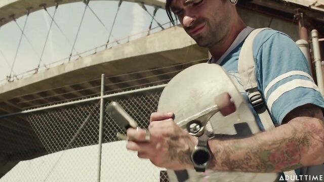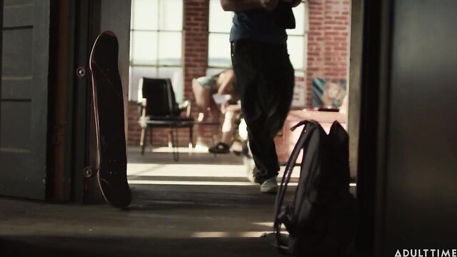 Description:Lucky Fate is chilling with Paul (Nathan Bronson) at their warehouse apartment while Lilly Bell and Vanna Bardot play video games on the couch. Paul's throwing a New Year's Eve party tonight- the night before he gets picked up to go to jail. Lucky's trying to convince Paul to let him take over the 'business' while he's gone, but Paul disapproves.Paul thinks that Lucky has so much potential as an artist- why would he waste his life in this dirty warehouse, running away from cops and scrambling for dollars and dimes! Paul desperately wants Lucky to see reason and get out of this sketchy lifestyle, but Lucky is persistent. When Vanna and Lily hint that Lucky should leave so that they can give Paul a 'going away present', Paul reluctantly agrees to give Lucky one of his contacts- a guy called Casper. Lucky leaves the warehouse and pulls out Casper's number, intent on giving him a call.Back at the warehouse, Paul feels a tinge of guilt for allowing Lucky to remain in this down-and-out lifestyle. At the same time, he's got two beautiful skater girls who are ready and willing to blow his mind (and his cock). Vanna and Lily pull him onto the bed and start undressing him, kissing him, and feeling up his muscled body. Paul's going away for a long time, but luckily for him, a sexy threesome might provide triple the memories for him to savor in the slammer.Sometime later, Lucky waits for Casper in a dark alley when his parent, Tommy Pistol, appears. It is revealed that Tommy is actually Casper, one of Paul's suppliers. Tommy tries to convince Lucky to smarten up, but Lucky won't have. They get into a heated argument, culminating in Tommy breaking Lucky's skateboard. Tommy gets out of there in a huff, leaving Lucky crying on the alleyway floor.
