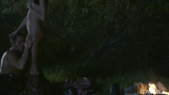 Description:Brooke Ballentyne is at it again. She can't resist a good fuck by the fireside and under the enchanting moonlight. After laying down a blanket, she gets naked but keeps her riding chaps on as she fucks the hired help!