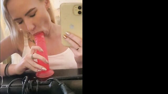 Description:Blonde babe Bella Mur takes a pink dildo up her ass to stretch it out and train it for the two hard cocks that she gets fucked by on the couch.