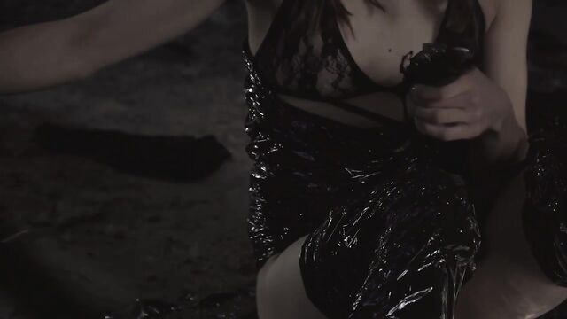 Description:Horny Raisa gets wrapped up in self-pleasure in this kinky movie fantasy. It’s a sunny day and the cute, auburn-haired babe walks through long grass and past graffiti-daubed walls, to a derelict building. She is dressed in a sheer top over a sexy black bra, with a black skater skirt and sneakers, and she is carrying a large roll of black plastic wrap. Cautiously, she enters the building and searches for the ideal spot – then she uses lengths of the wrap to create a mat on the dirt-strewn floor. Next, she strips down to her black-lace lingerie, then removes her panties. She sits down and wraps her legs and midriff with the plastic, giving a sense of restriction and a fetish look. She parts her thighs, her puffed-up shaved pussy illuminated by a ray of sunlight, and begins to masturbate, stroking the plastic wrap and splaying and teasing her folds. As her subtly manicured fingertips circle her clit, she sighs with pleasure and her free hand caresses her breasts. She frigs herself faster and humps against her fingers as they slip inside. Next, she grabs another item she has brought along, enclosed in the same black plastic. She rips off the wrap to reveal a huge, realistic-looking dildo, and immediately begins to lick and suck on it, blowing it expertly. Meanwhile, she continues to fingerbang her pussy, keeping it wet and open, ready to take the toy. She plays the head against her slippery slit, then eases the helmet and huge shaft inside of her. She pounds her pussy, then squats over the mock-cock to ride it hard and deep. Her cries become more frantic as she approaches orgasm and she sinks down to take almost the full length, rubbing her clit furiously as she cums, sobbing in ecstasy, then raises herself up and off of the shaft. She tears the plastic wrap from her body, standing up to stroke her slender curves as the picture fades to black...
