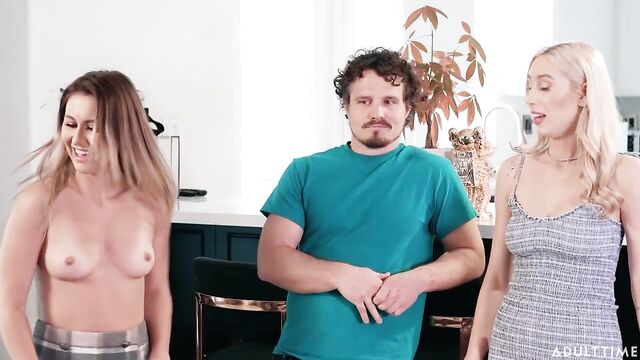 Description:Kay Lovely is playing pool with her date, Robby Echo. Kay's roommate Paige Owens sees them having fun, and asks if she can join in. As the game becomes increasingly competitive, Paige offers to make things more interesting by saying that if she makes the next shot, she gets to take her shirt off. Paige successfully makes the first shot, so she takes her top off... and she's NOT wearing a bra underneath!Kay is surprised, saying she didn't think Paige would actually do that. But Paige says that turning this pool game into 'strip pool' sounds extra fun, so why not? Robby and Kay end up agreeing, so the game continues, and before long Robby ends up losing his pants and then his underwear. Kay suggests that maybe she and Paige should change the game into a competition over Robby's dick, so they start sucking on his dick and balls. Next, the ladies get fully undressed for even MORE fun. Pool is great, but it looks like they've found something better!