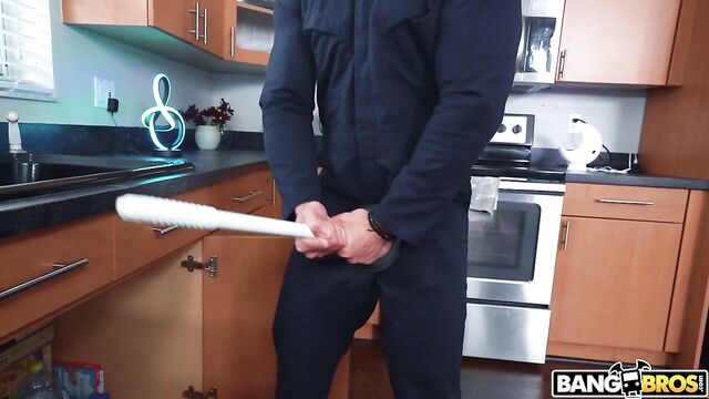 Description:Sarai Minx is having some plumbing issues so she calls a plumber to come take a loog. During the inspection, the plumber, Danny Steele, gets his plunger stuck to his outfit. While trying to pull it off, he pulls a bit too hard which rips off his entire uniform, leaving him naked in her kitchen. When she walks in, at first she's shocked but then realizes how sexy his body is and his huge dick. She decides that she wants to have a bit of fun instead She gets on her knees to give him an amazing blowjob before he takes her to the couch and fucks her hard...plumber style. She gets a huge load out of him all over her face.