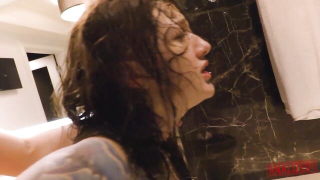 Description:Pretty babe Kelsi Lynn shows off her bubble butt while in the bathroom. She is wearing a blue bikini. Kelsi teases the camera with her beautiful face and luscious body. She fondles her boobs and rubs her pussy. This tattooed slut continues to play with herself until James Deen enters the frame. He goes straight to her then puts her hand into her mouth. James pulls her closer and hugs her tightly from behind. Kelsi gags as James force her hand deeper into her mouth. He wipes all the spit into her pretty face. James continues to rough her up, choking, gagging, slapping and spanking her. Kelsi seems to enjoy the impact play and asphyxiation. She gets on her knees to suck his hard cock. James shoves his cock deep into her throat. She can’t help but gag as his big dick touches the back of her throat. James receives a wet and sloppy blowjob. He keeps on stuffing her mouth with his dick. Her pretty face is now completely covered with spit. James pulls her up then turns her around. He inserts his big cock into her tiny asshole. Kelsi moans loudly as James pounds her from behind. She can feel his cock stirring up her anal cavity. James covers her mouth with his hand. The two goes inside the shower. James continues to fuck her in the ass. She shows off her gaping asshole to the camera. He fucks her again in doggystyle position before shifting to reverse cowgirl. She sits on the lap of James. She slides his dick in and out her butt hole. He spreads her puffy pussy for the camera. They continue to fuck in the bathroom for quite some time, constantly changing their position. They try to utilize the small space as much as possible. James keeps on pounding her asshole until he feels like he is about to cum. He pulls out his cock from her wide gaping asshole then shoots his warm cum all over her pretty face.