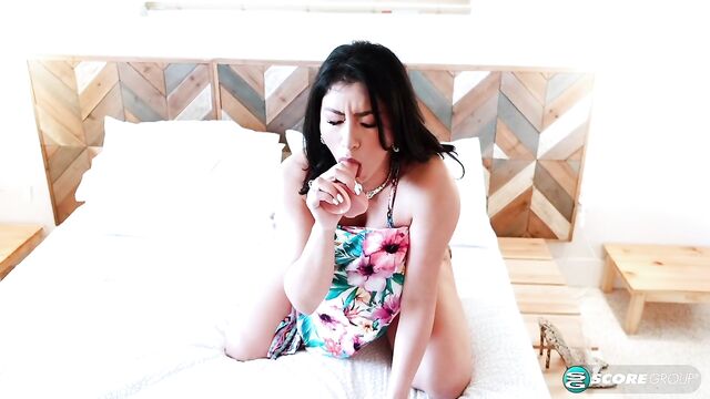 Description:Selena Adams checks out her sexy body in the bedroom mirror. Selena likes how her sweet big tits and equally sweet ass look in her new dress, which is designed to reveal lots of cleavage. Selena's waiting for her girlfriends to pick her up so they can go out for brunch at some swanky South Beach restaurant, turn a lot of heads and make traffic slow down. A Miami girl, Selena is excited to hit the town and feels herself getting wet and tingly. While she waits for her girls to call and tell her they're ready, she feels the urge to cum. She takes off her dress and thong panties and gets into bed for a quickie. Reaching behind a pillow, Selena takes out a big fuck-toy and pumps her creamy, pretty pussy. A lot of girls shop for their bedroom sets at stores that include sex toys as free accessories. As horny with breast play as she is twerking her sexy ass, Selena goes deep with her cock-shaped dildo. Her pussy is soaked and creamy as she fucks herself in different positions and cums with a contented sigh. Just in time, too, because her girls will be coming soon...but not the way Selena just came.
