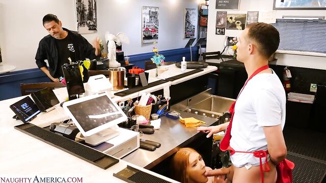 Description:Harper Red hooked up with her best friend's brother Johnny once and now she wants to fuck him all the time. He's closing up the coffee shop and there is a customer that just won't leave, but that won't stop Harper from getting what she craves.