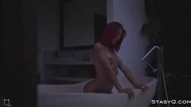 Description:Undressing in front of Said Energizer and his high-quality camera is JennyQ's passion. In video release 504, the petite goddess spices up a lonely day by hopping into white lingerie and taking a walk through a lush, exotic garden. The beauty of this StasyQ model is a pure joy to all senses. She appears, wearing white knee-highs, cozy white panties, and beautiful tattoos on her slim and bombastic figure. For a brief moment, the focus is on her pink hair, pouty lips, and perky breasts with a pair of pierced nipples. Her erotic back is embellished by a big artistic tattoo that further emphasizes JennyQ's wild temper. She is too hot to stop now. JennyQ loses her lingerie, fills a big tub with warm water, and gets inside. She feels the touch of water all over her firm breasts, slim waist, and a perfectly-round tushy while her gaze stays fixed on the camera.
