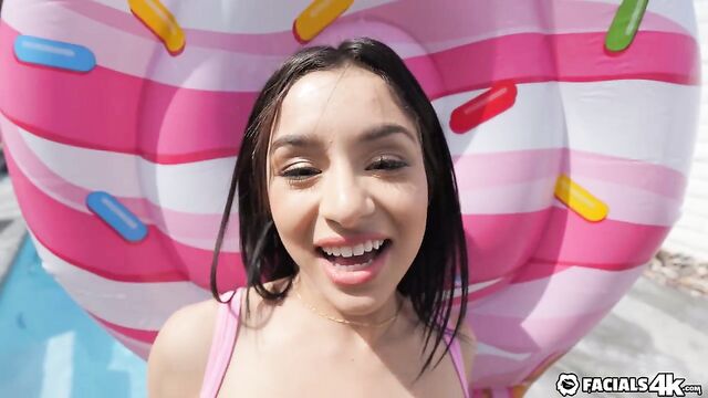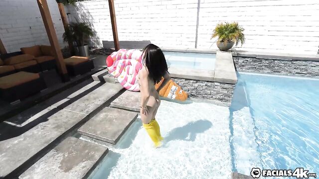 Mickey Violet gets naked and enjoys her backyard pool. Kyle and Will see her masturbating by the pool and give her a helping hand.