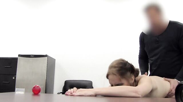 Description:You can tell by the way she carries herself that redhead Cassidy has been beaten down by life more than a few times. No job, "not doin' so good" in school, and, alas, she starts her period on one of the most important days of her life - which would be today, as she nervously auditions with me for those coveted $5000 per day jobs. Cassidy's hand shakes and she knows she doesn't have much going for her, so she'll have to put up with whatever I want. This includes the buttseks which I gentlemanly nudge her in to without bringing up the menses incident. She knows it's her only option to impress at that point so no need to further embarrass the girl. She's doing that quite well herself already.
